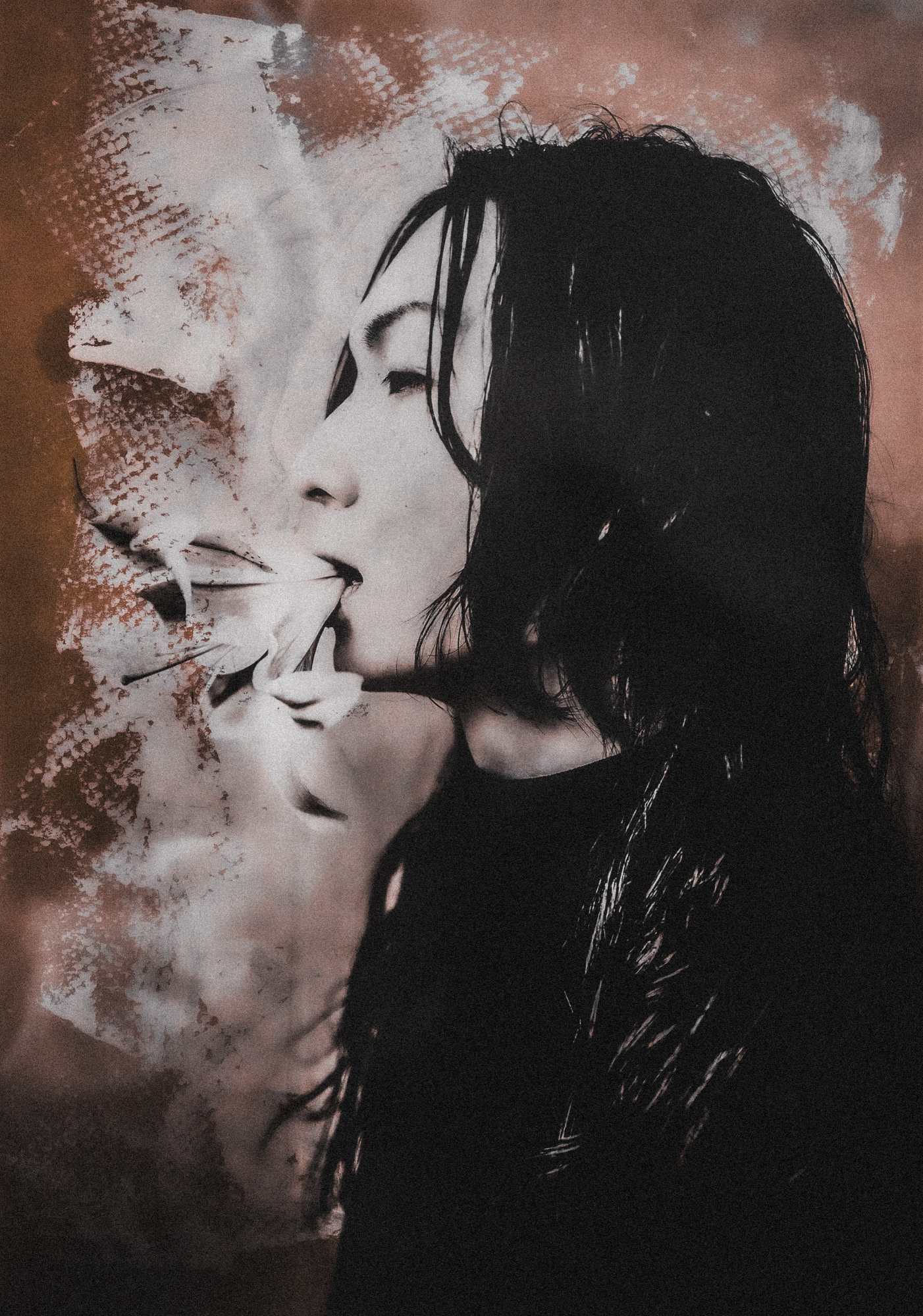 For Kurosaki Sangan, photography is both a hobby and a means of enriching his life. He wants to create unique photographic works and share them with those who appreciate them. Rather than digital compositions, he creates analogue works by overlaying photographs on craft paper that has been painted with white oil paint. He creates his portraits with the intention of capturing the emotions of his subjects. Last but not least, he believes that compatibility with the model in terms of personality and aesthetic sensibility is more important than beauty.